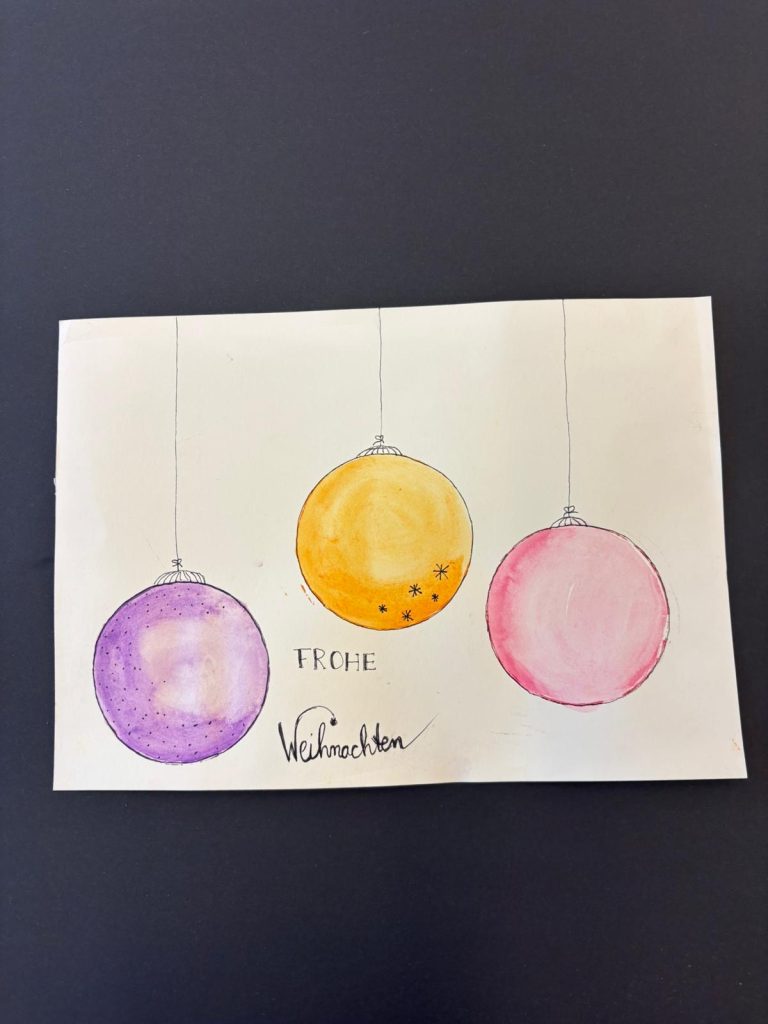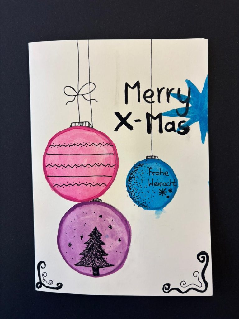 Die Klasse 8b gestaltete unter Leitung von Frau Wendel in den letzten Kunststunden vor den Weihnachtsferien wunderschöne Karten. Vielleicht liegt auch eine Karte für Sie unter dem Weihnachtsbaum!